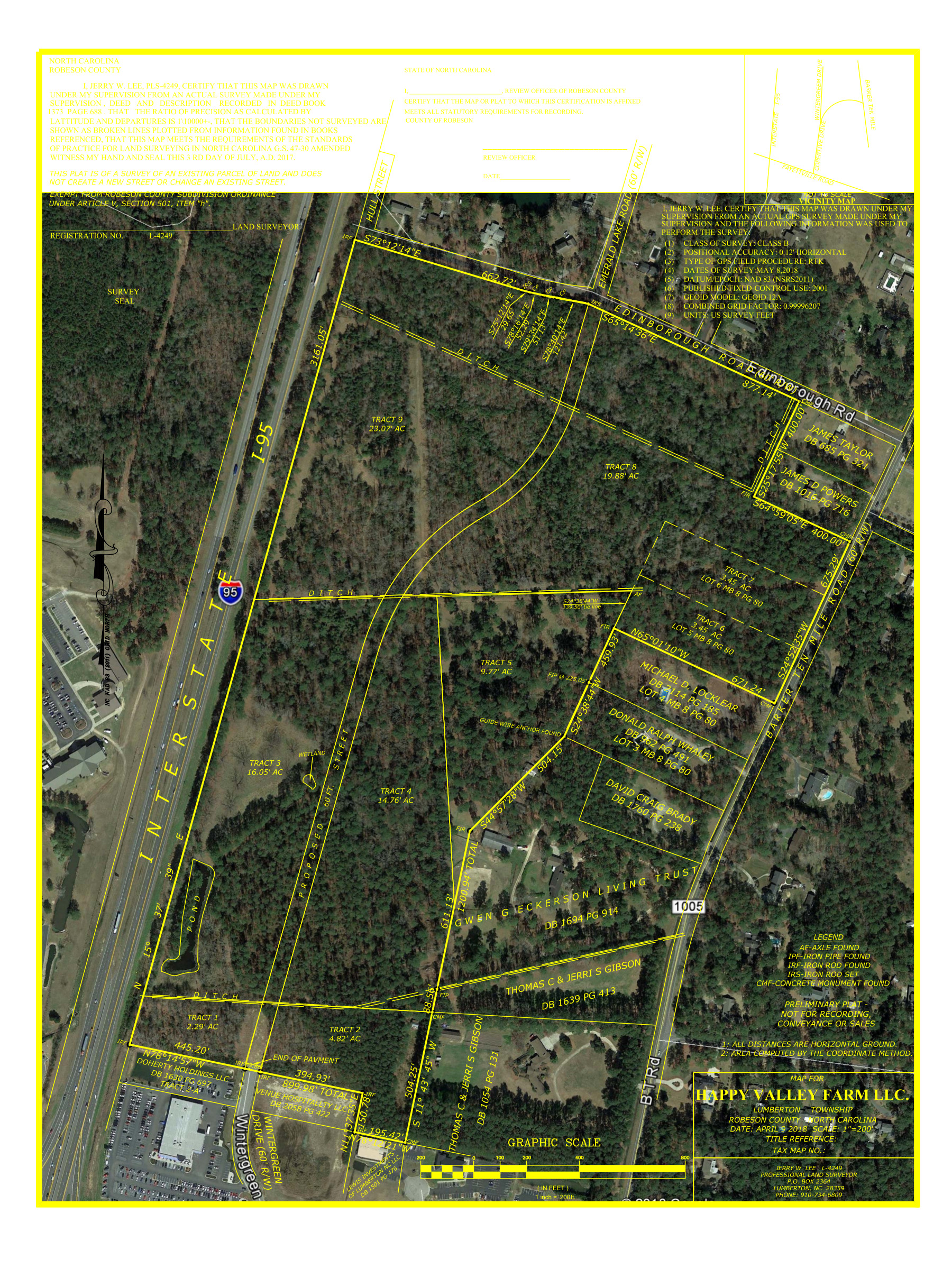 This 16.05 acre parcel is part of a 102.02 acre commercial site off exit 22 on I-95 and on the extension of Wintergreen Drive. Exit 22 is the premier exit off I-95 in North Carolina with shopping, hotels, restaurants, medical facilities, car dealerships and Robeson Community College. With 56,000 cars passing the property daily this property provides great visibility for prospective buyers. This parcel borders on the city limits and is zoned city agricultural, with city sewer, gas, water and electric available. This tract was designed using the existing ditch on the city limits, Interstate 95, a ditch on the northern end and the extension of Wintergreen Drive. The owners have opened up what would be the extension of Wintergreen Drive for approximately 1,900 ft. so potential buyers can easily see the topography and lay of the land. There is an extensive road system in this parcel connecting a pasture area around a farm pond with a pecan grove.